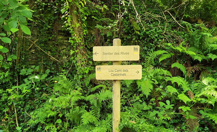 À l’intersection avec le sentier « Lo Camin dels Castanhals», bifurquez à gauche pour grimper vers le hameau des Cuns. Contournez le Mazet par la gauche. À l’arrivée sur une portion goudronnée, prenez à droite (soyez prudent).