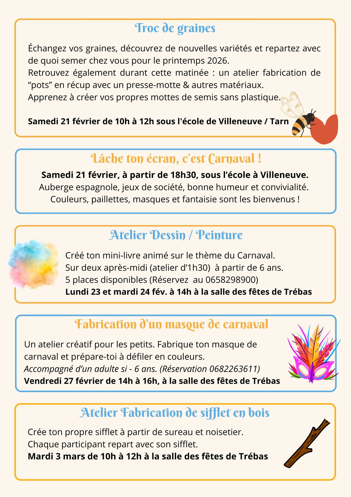 Atelier dessin / peinture Salle des fêtes Trébas 81340 Trébas