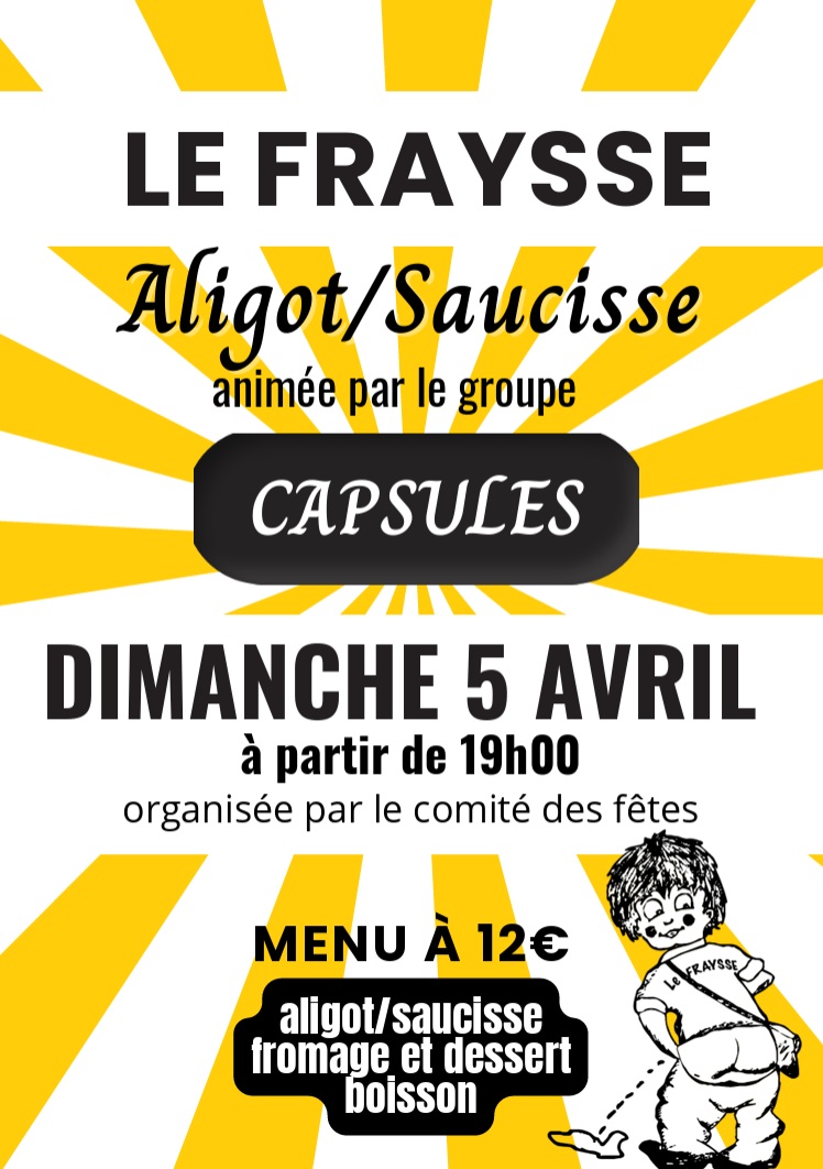 Envie d’une soirée conviviale ? Venez savourer un délicieux aligot / saucisse préparé par le comité des fêtes !