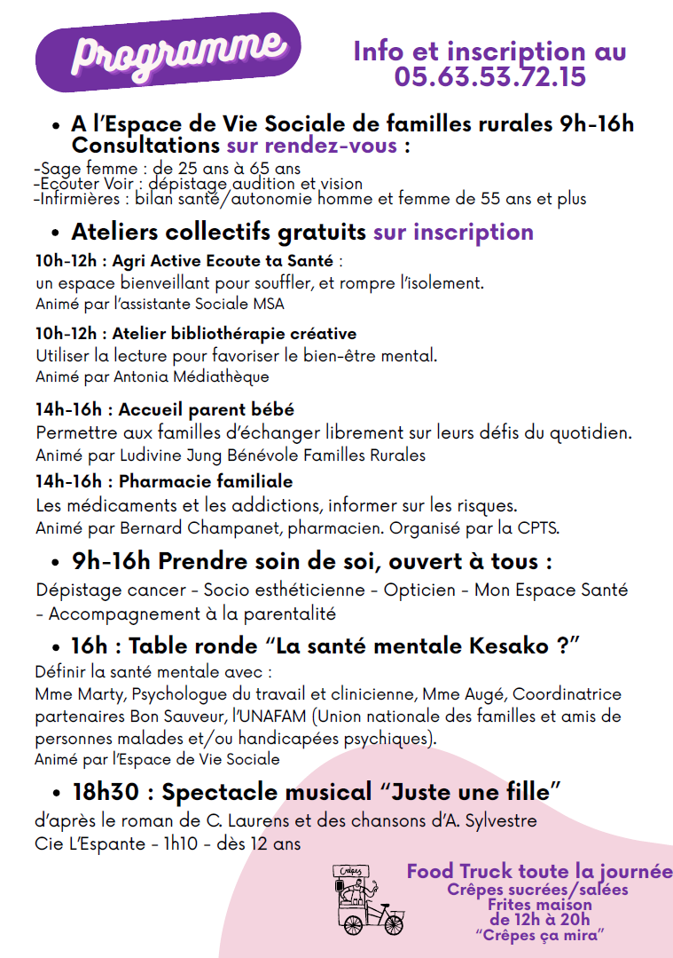 A l’Espace de Vie Sociale de familles rurales 9h-16h