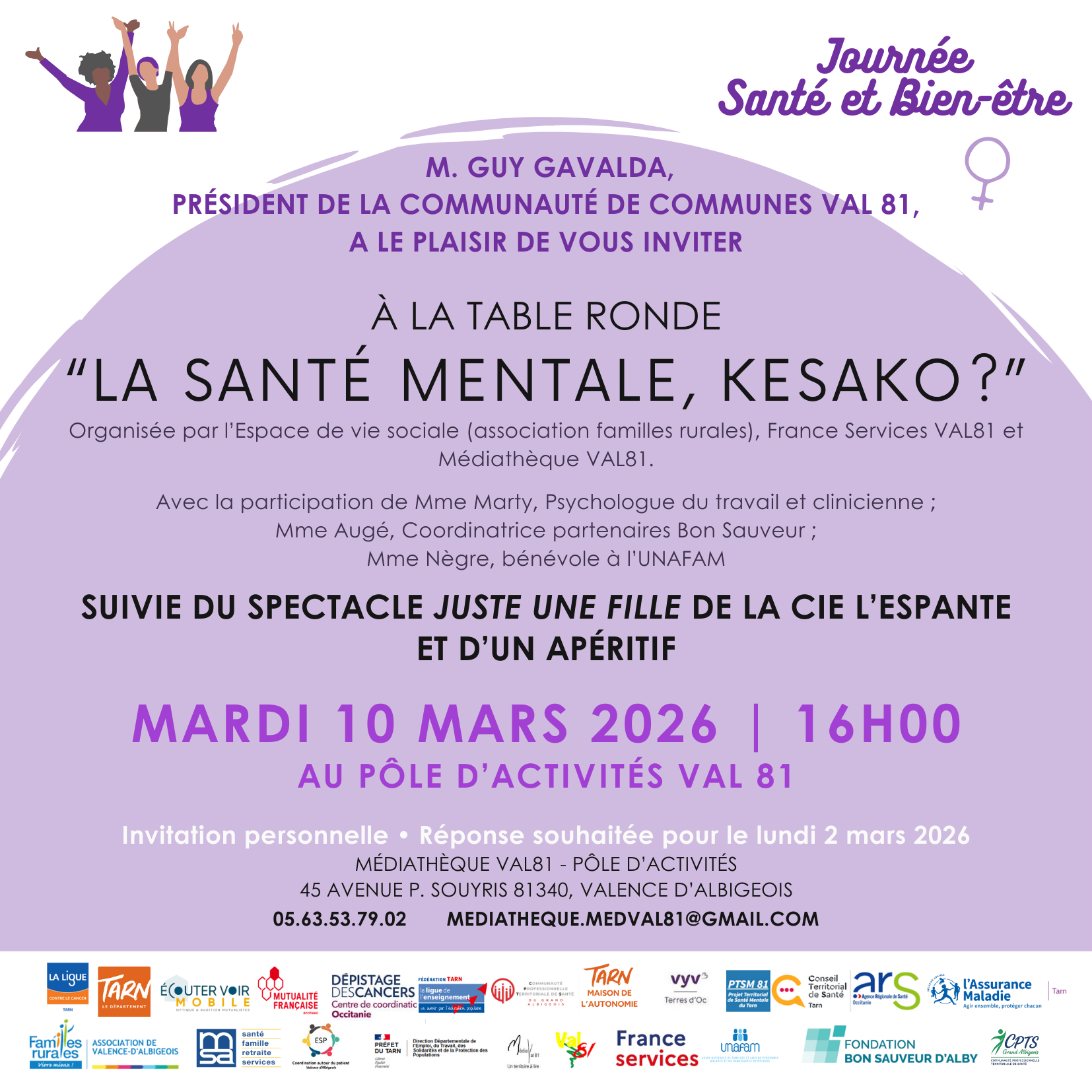 La santé mentale, kesako ? médiathèque Val 81 45 avenue Pierre Souyris 81340 Valence-d’Albigeois