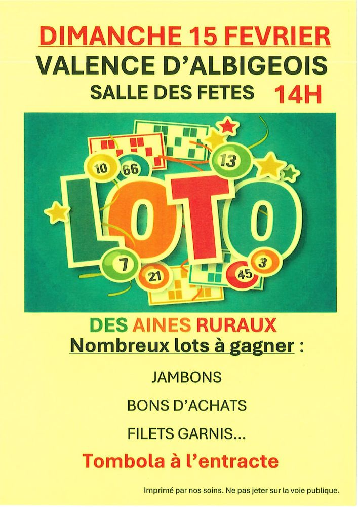 Que vous veniez en famille ou entre amis, ce loto est l’occasion idéale de partager un moment chaleureux et animé au cœur de Valence d’Albigeois.
