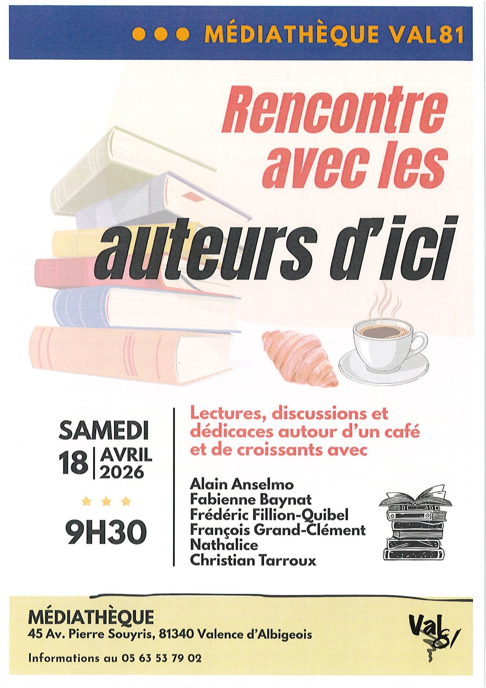 Rencontre avec les auteurs d’ici Médiathèque 45 Av. Pierre Souyris 81340 Valence-d’Albigeois