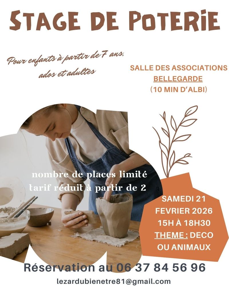 Le stage se déroule le samedi 21 février 2026, de 15h à 18h30, à la Salle des Associations de Bellegarde, située à 10 minutes d’Albi.