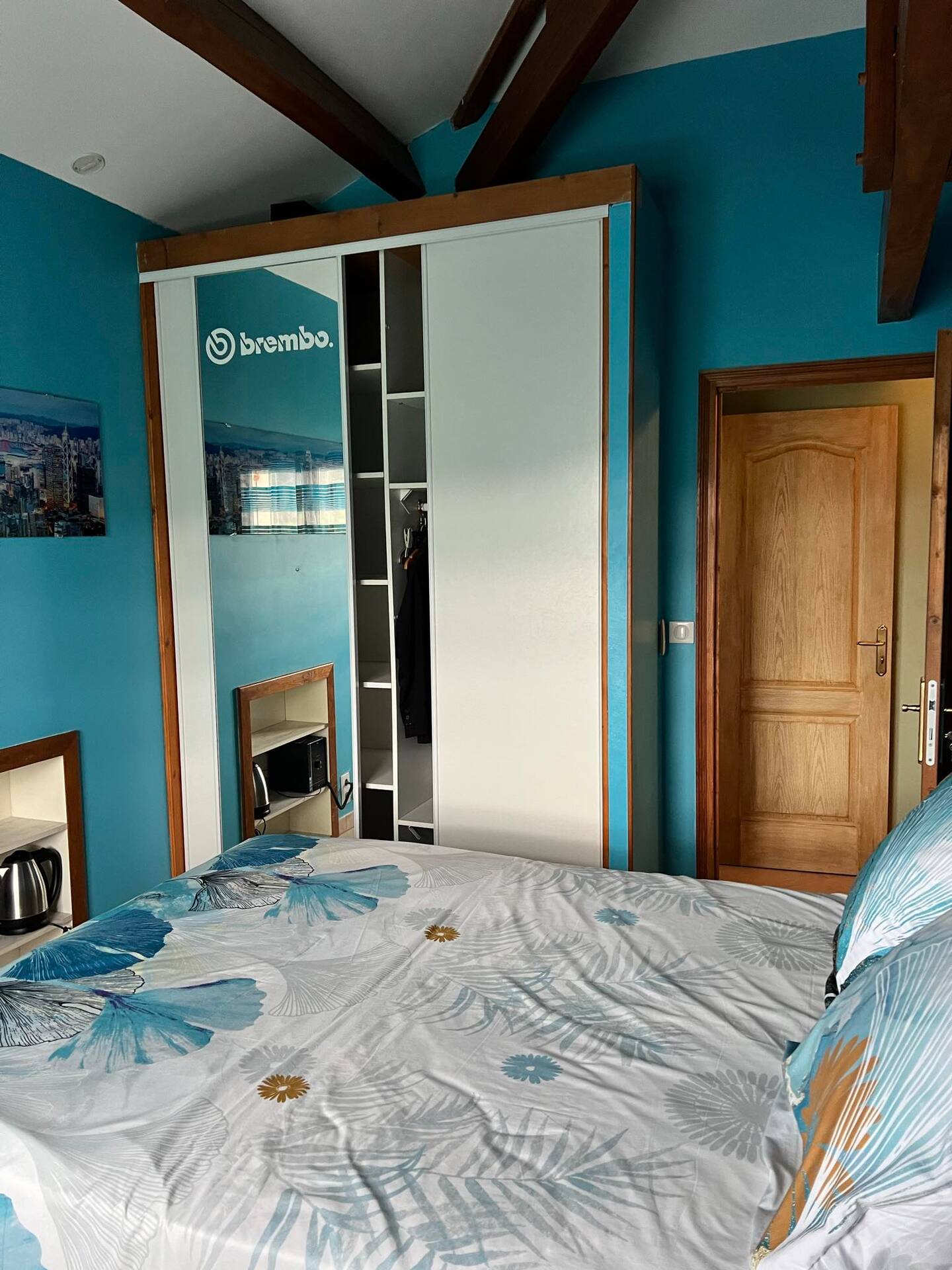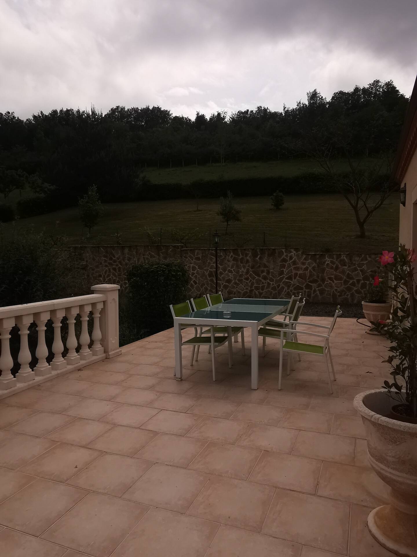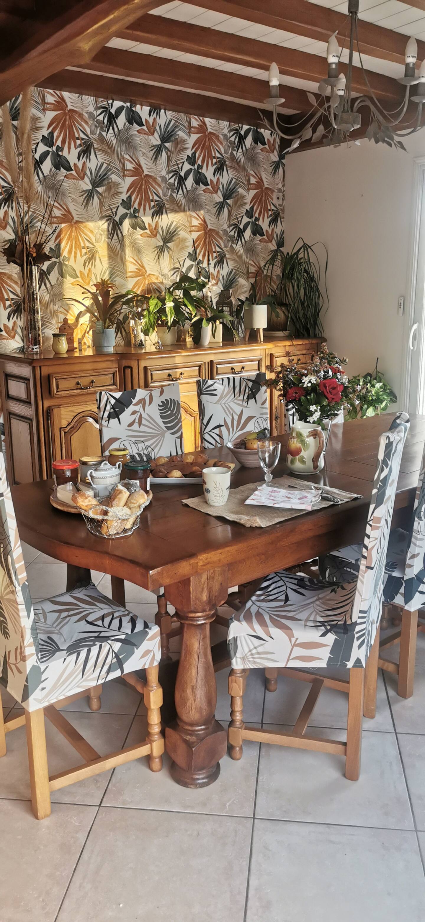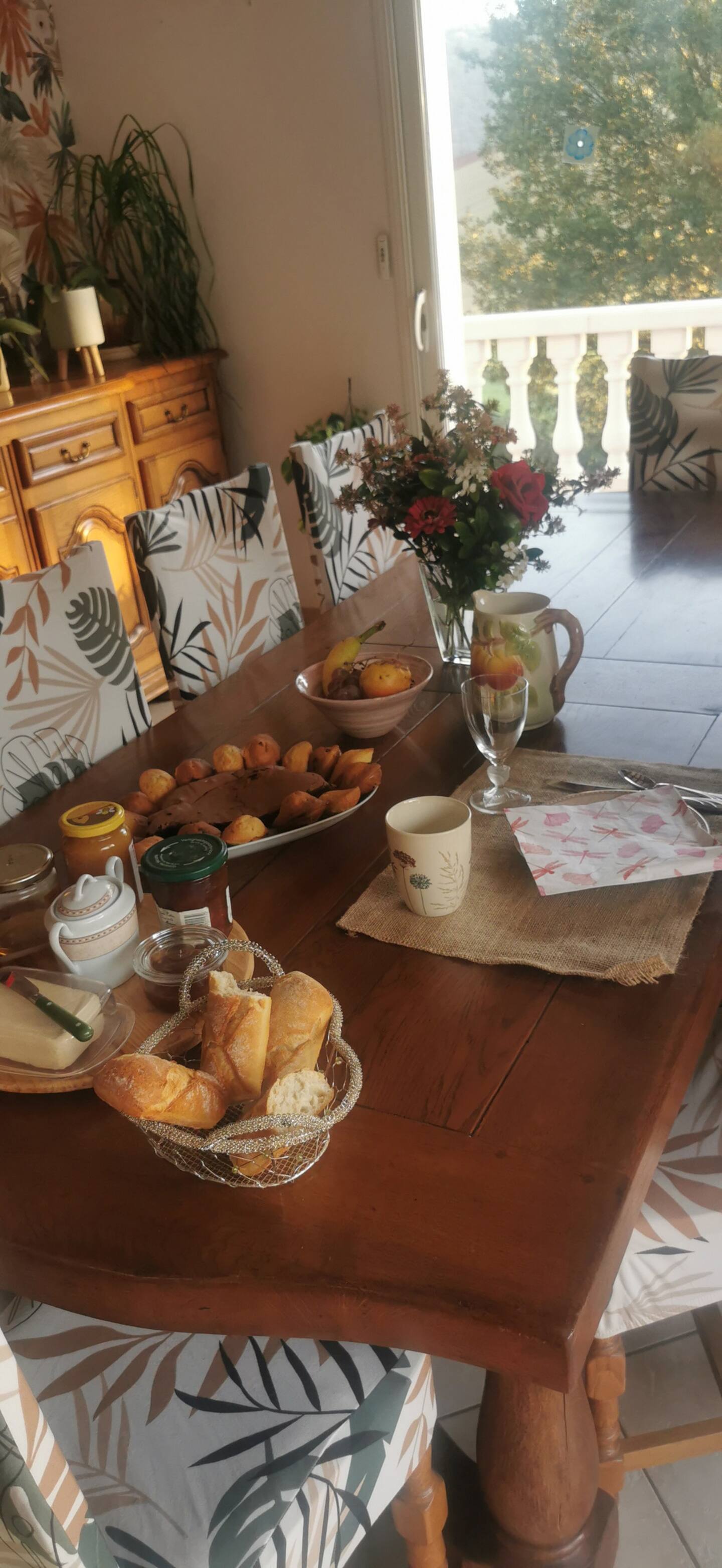 Votre chambre dispose d’une salle de bain et d’un WC séparé. Vous aurez également accès à une terrasse privative équipée (table, chaises, transats, parasol) et à un salon détente parfait pour lire ou se ressourcer. La salle à manger et la cuisine restent accessibles, et une table d’hôtes est possible sur demande.