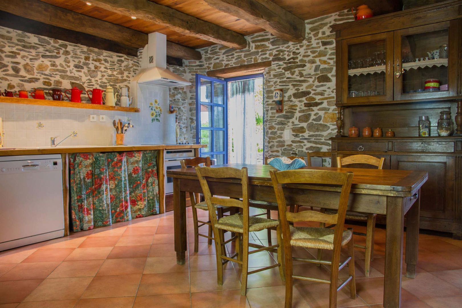 Chaque gîte est indépendant, sans vis-à-vis avec jardin et parking privatif. Vous disposerez d’un espace commun aux deux gîtes avec salle de sport équipée et ping-pong ainsi qu’un espace jeux enfant avec balançoires, toboggans, cabane et bac à sable.Chez Ernestine, gîte de 110m², pour 6 personnes, grande terrasse de 25m² sur l’arrière, dominant la vallée. On rentre dans le gîte par quelques marches, directement dans la pièce à vivre (35m²) climatisée avec coin salon (canapé, tv, cheminée) et coin cuisine toute équipée. Une chambre (20m²) avec lit double en 140x190cm d’un côté, les deux autres chambres se situent à l’opposé : une première chambre avec un lit double en 140, et en mezzanine deux lits simples en 90x190cm. Salle de bain avec grande douche à l’italienne, double vasque, wc indépendant avec lave main, buanderie équipée.