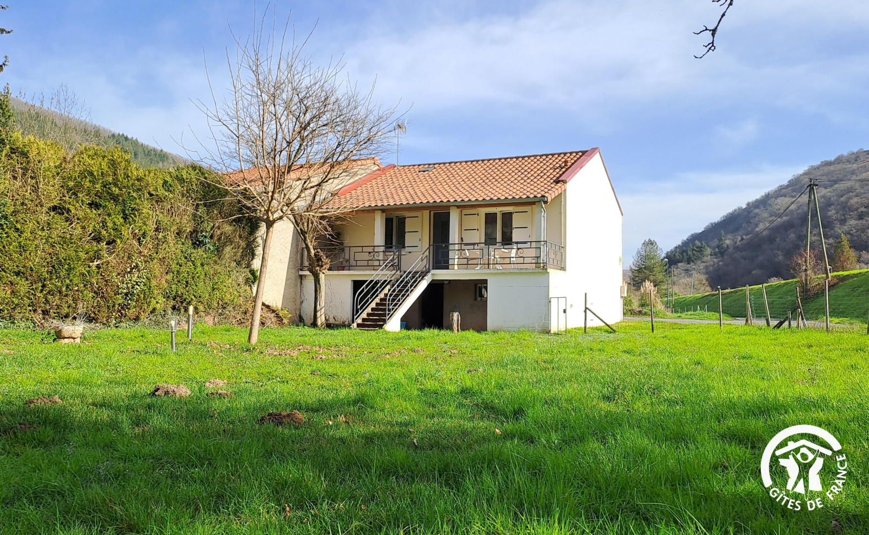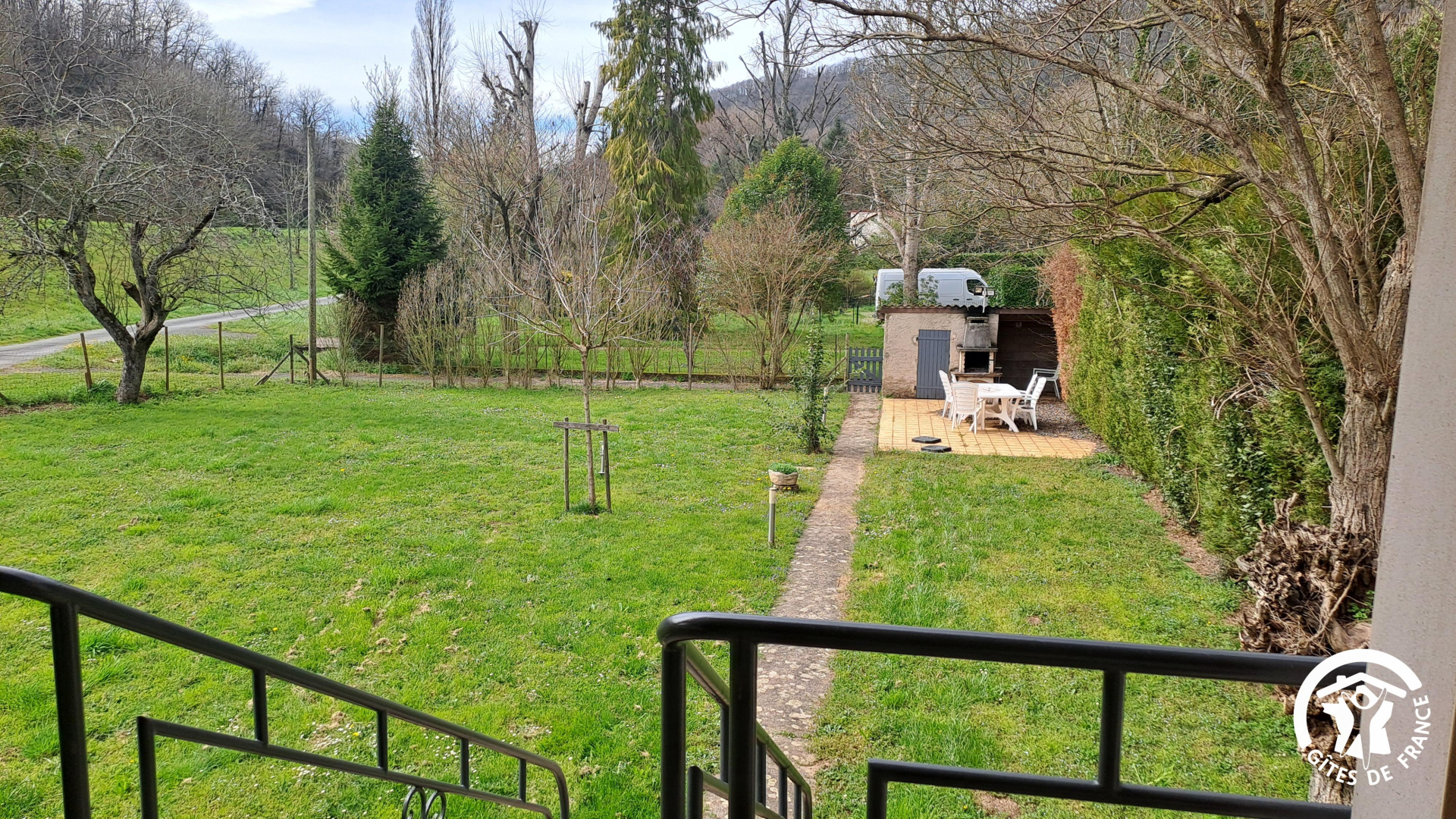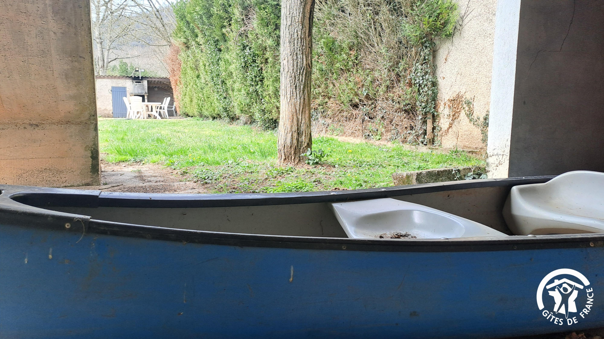 On accède au gîte par un escalier extérieur, par devant ou par le jardin, la maison se situant au-dessus d’un garage et d’un sous-sol, en contre-bas de la route. Vous avez un canoë à votre disposition, ainsi que le garage si vous souhaitez mettre votre voiture à l’abri. Prise Green Up pour voiture électrique.