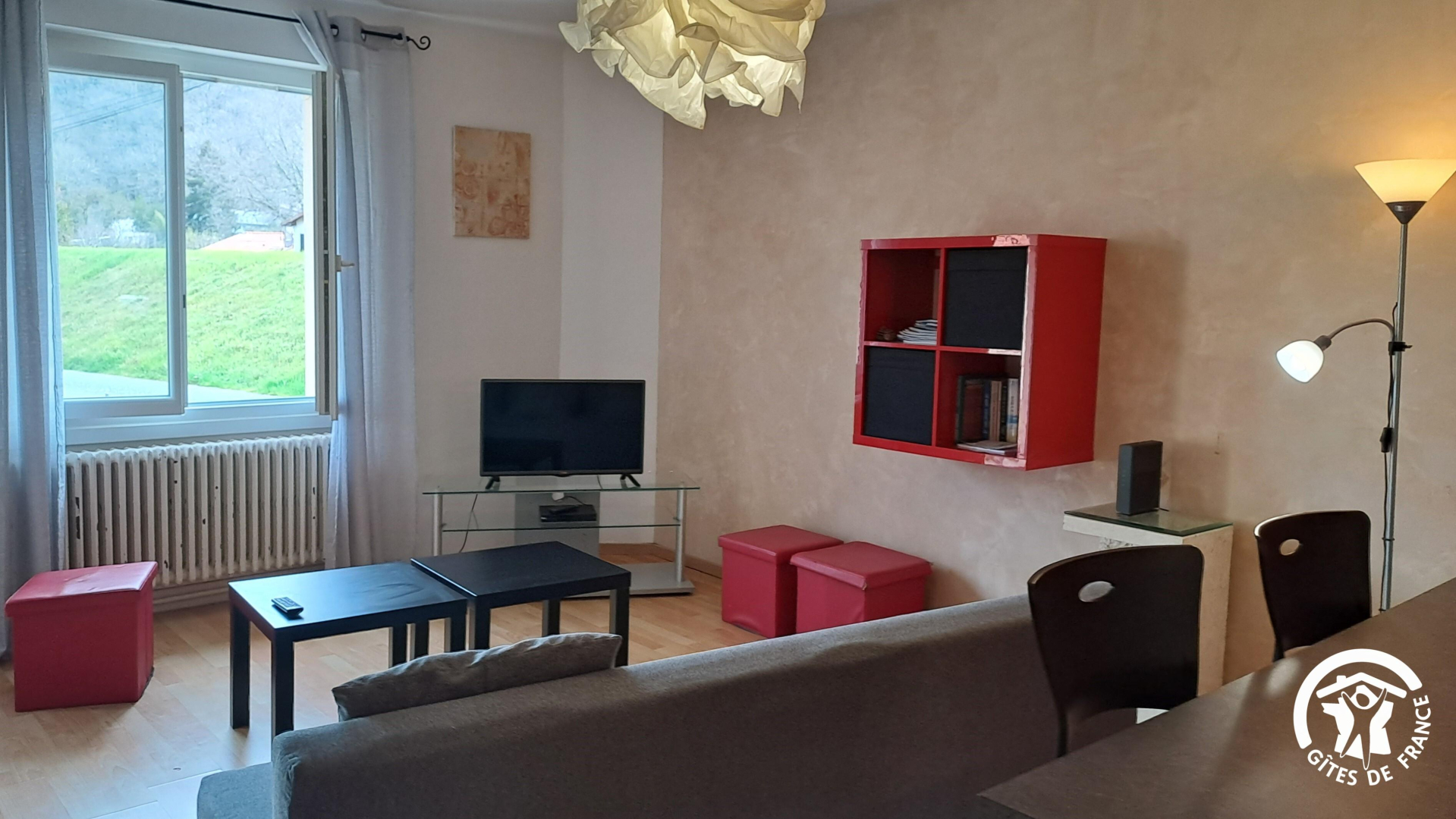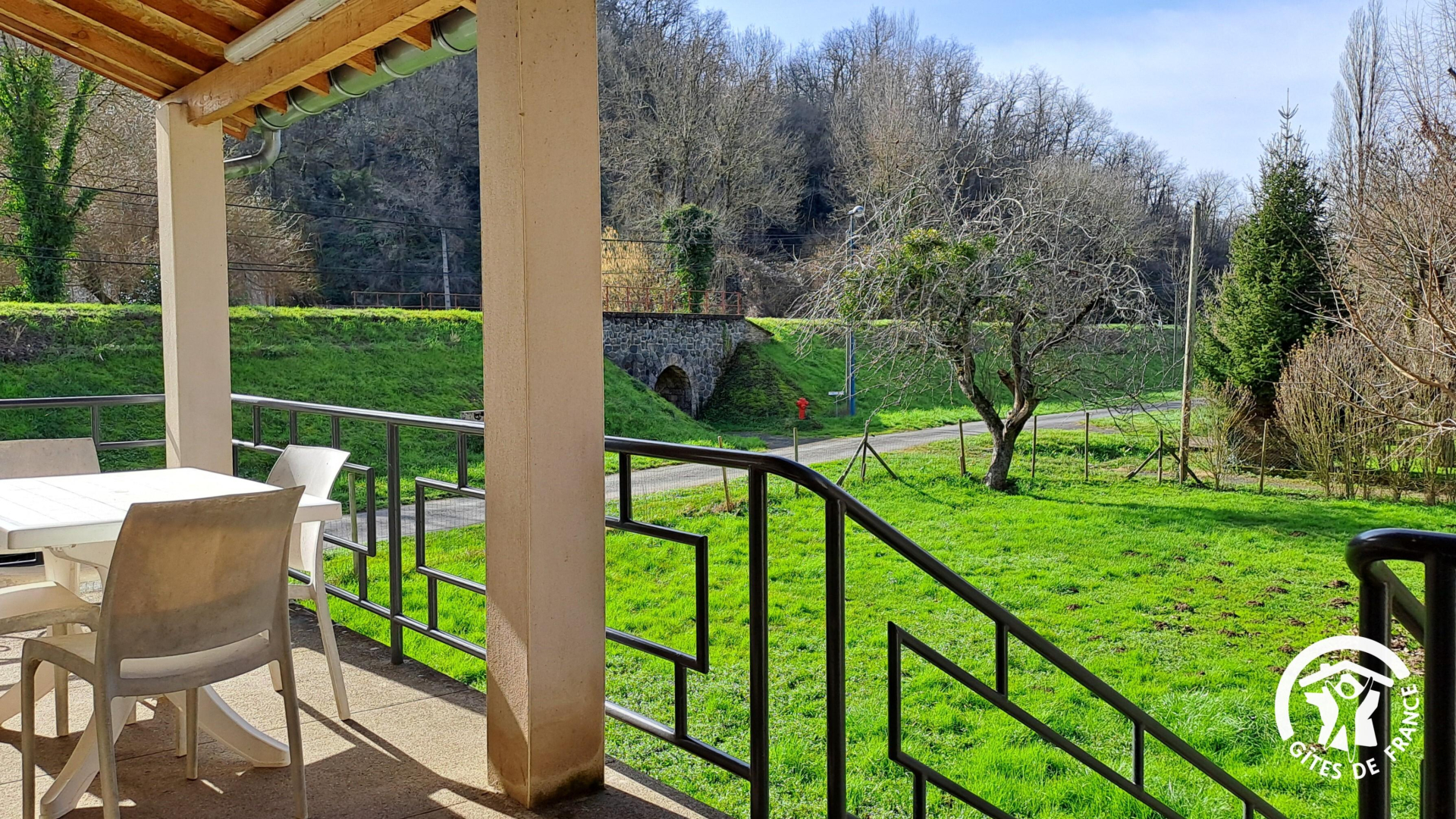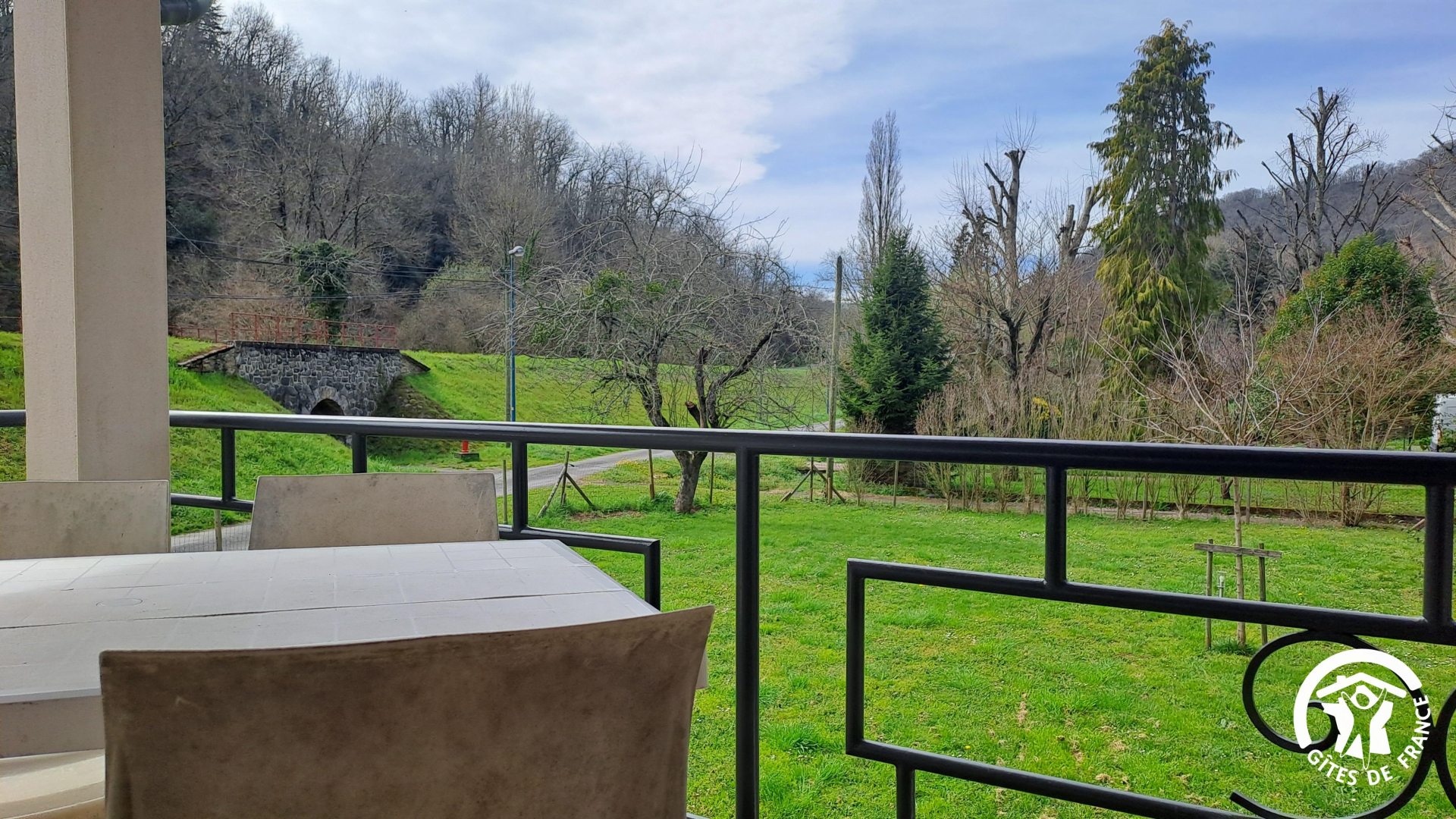 On accède au gîte par un escalier extérieur, par devant ou par le jardin, la maison se situant au-dessus d’un garage et d’un sous-sol, en contre-bas de la route. Vous avez un canoë à votre disposition, ainsi que le garage si vous souhaitez mettre votre voiture à l’abri. Prise Green Up pour voiture électrique.