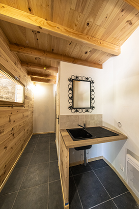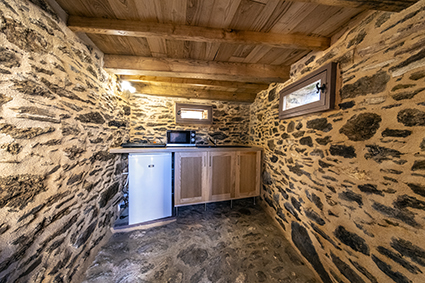 Le logement se compose d’une pièce unique avec des lits superposés, une table et une kitchenette fonctionnelle, permettant de préparer des repas simples. Les sanitaires, situés à proximité immédiate du gîte, comprennent douche, lavabo et toilettes.