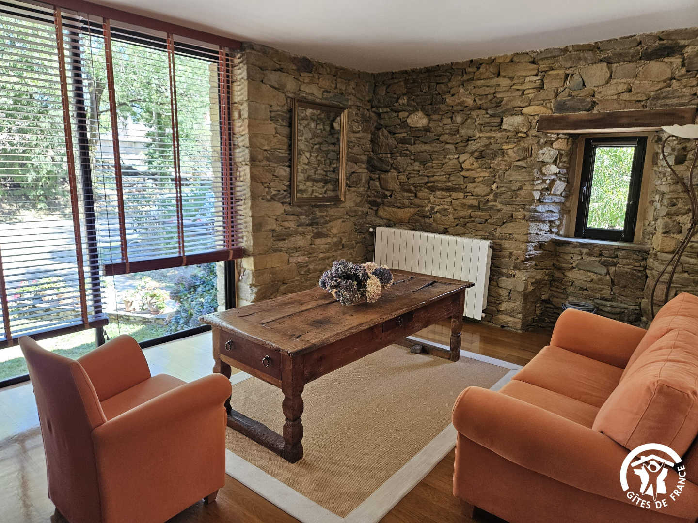 Le cadre est enchanteur, un grand parc arboré, une jolie piscine rien que pour vous, et un sauna pour vous détendre. La rénovation de la maison est une grande réussite, dans le respect des matériaux et des savoir-faire traditionnels, hérités de génération en génération.Depuis le gîte, le sentier du Chevreuil descend tranquillement entre bois et prairies dans la vallée jusqu’au petit village de St-Jean-de-Jeanne, au bord de la rivière.