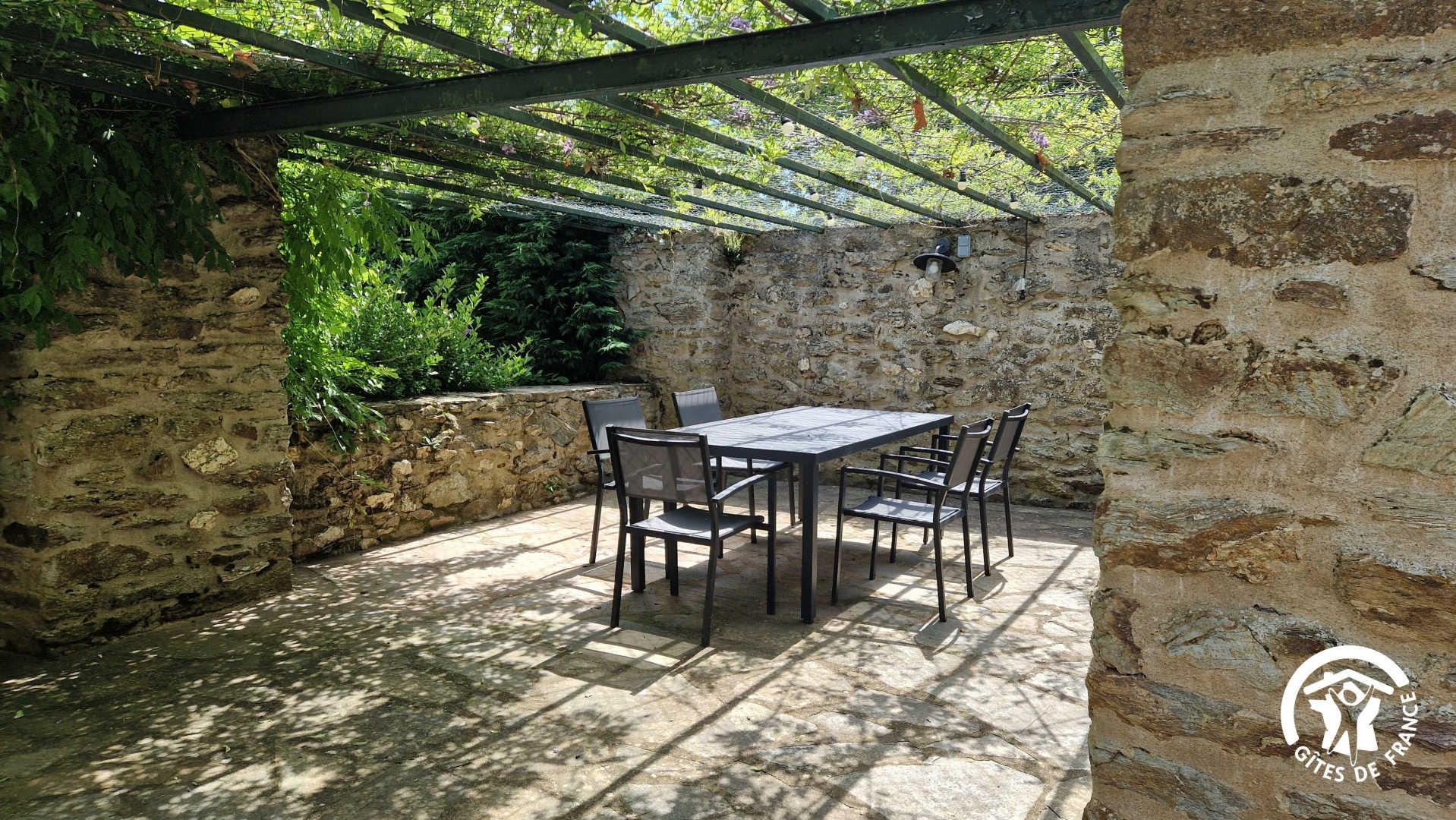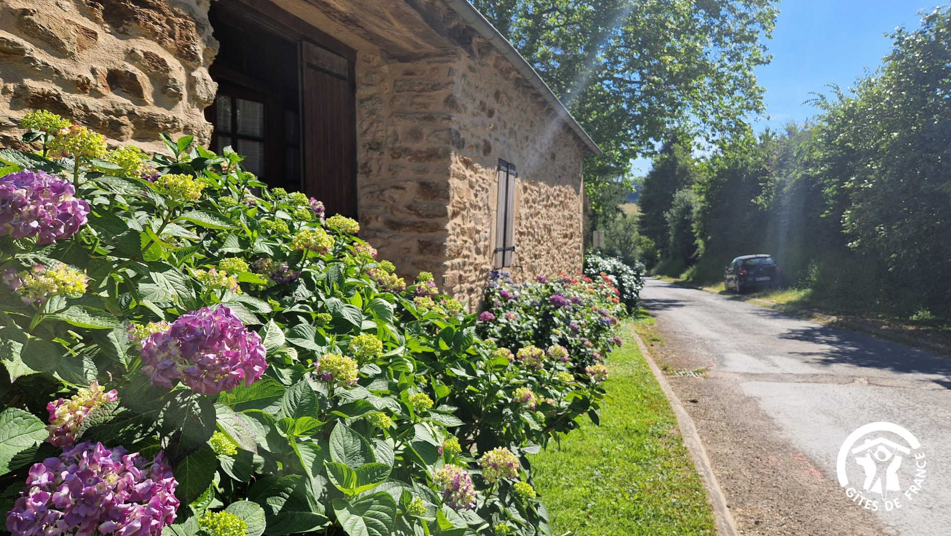 A l’extérieur : possibilité de profiter d’un jardin privatif planté de pommiers, face à l’entrée, de l’autre côté de la petite route. Sinon, de l’autre côté du gîte vous pourrez profiter d’une terrasse ombragée avec table privative à côté des autres tables (pour les autres gîtes), accès au barbecue à bois et le tout avec une vue magnifique sur la vallée !