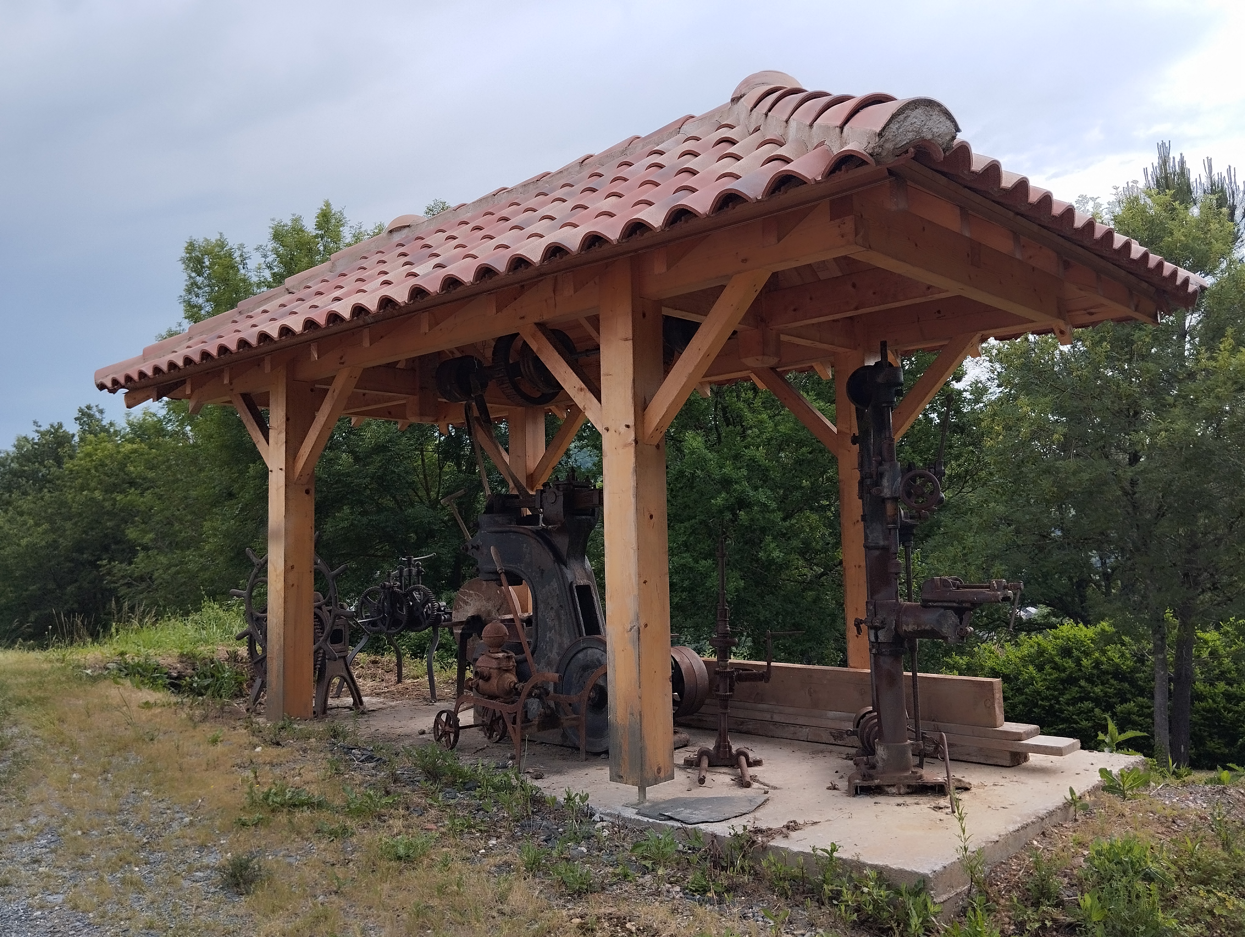 Nous avons réhabilité l’ancienne forge de nos aïeux et exposé les outils de travail, joyaux de notre patrimoine. A l’arrivée dans notre gîte, vous pourrez admirer le « ferradou » (appelé également travail), lieu où étaient ferrés les bœufs, entièrement reconstruit à l’identique pour abriter le marteau pilon, la cintreuse, la perceuse à main, la perceuse à colonne et l’arbre de ligne que nous avons souhaité rénover et exposer, tel un mini-musée de plein air pour partager ce patrimoine du passé avec vous. Du 18ème au 20ème siècle, cette forge a vu se succéder de génération en génération, des forgerons de père en fils jusqu’en 1982 date à laquelle son foyer s’est éteint pour toujours. Qui sait ? Avec un peu d’imagination, vous pourrez peut-être encore entendre le tintement du marteau sur la grosse enclume, sentir l’odeur âcre du fer rouge et imaginer le défilé des bœufs et chevaux venant de toute la campagne environnante de notre si belle vallée pour se faire ferrer les sabots. Nous avons reconstruit cette forge en conservant et consolidant les murs existants. Dans les années 1800, l’espace était même partagé entre un forgeron côté Nord et un serrurier côté Sud. La serrurerie donnait sur l’ancienne ruelle. Ainsi vous pourrez admirer les deux ouvertures de cette « boutique » refaites à l’identique. Cette rénovation nous tenait à cœur et nous sommes fiers de partager ce patrimoine familial avec vous, le temps d’un séjour que nous vous souhaitons le plus agréable possible. La terrasse, quant à elle, a été confectionnée avec les pierres et les ardoises du passé, repérées, démontées, transportées, triées et replacées devant la forge.