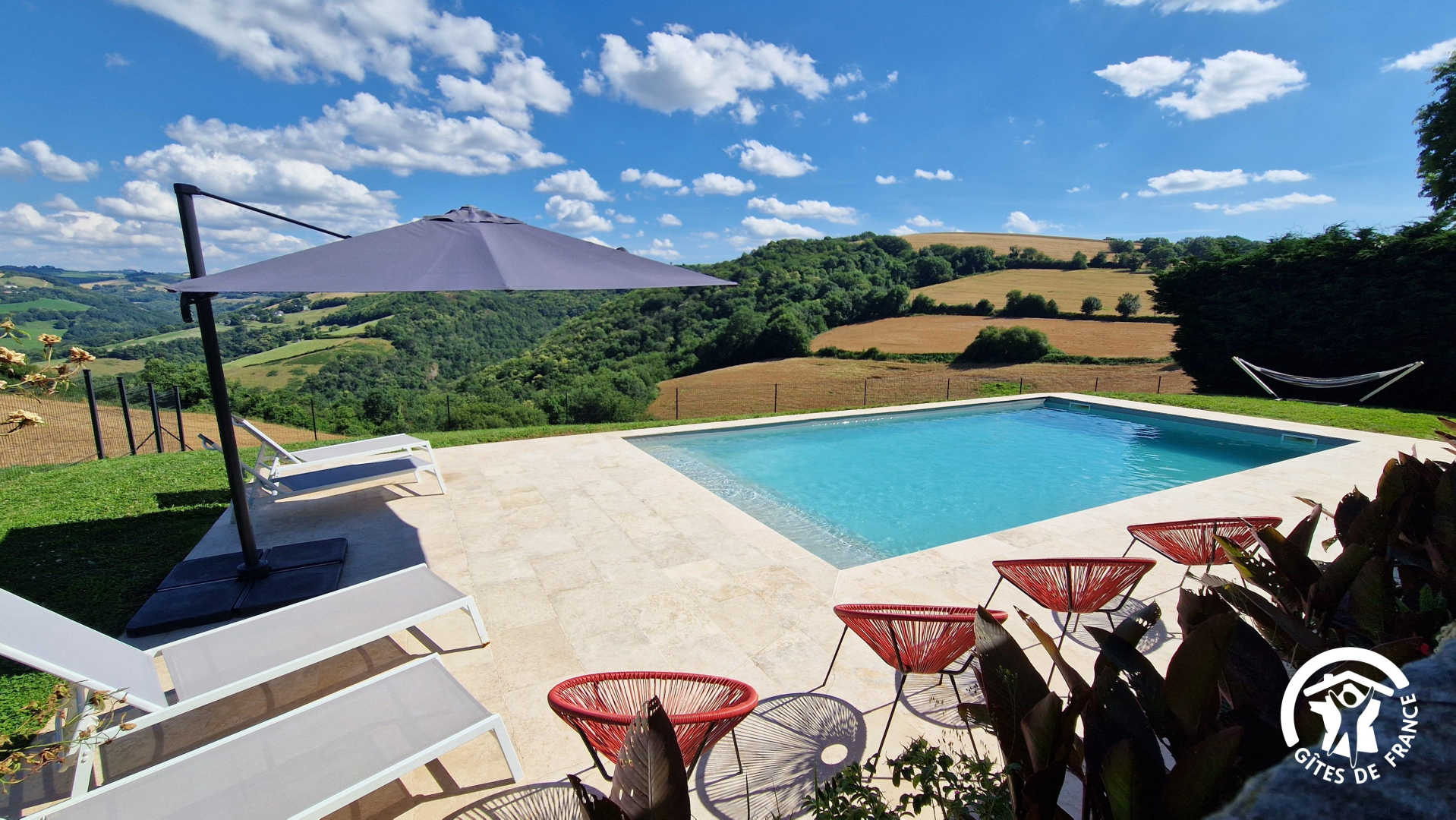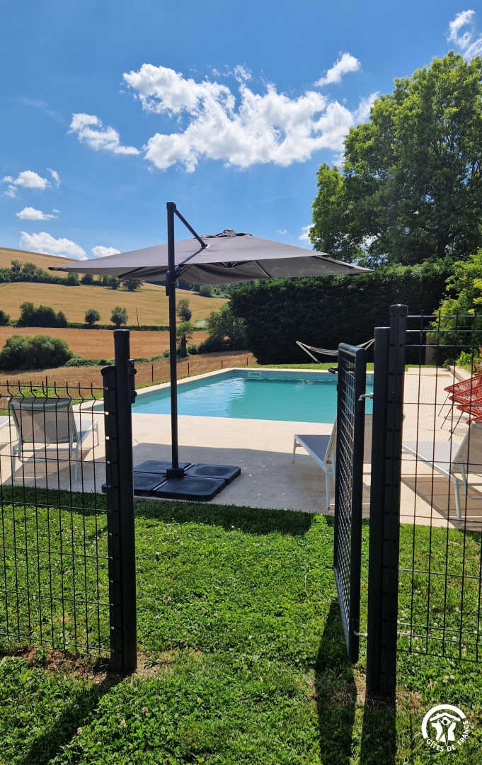 Piscine clôturée, ouverte d’avril à octobre en fonction de la météo, à partager avec les autres gîtes sur place : 10x5m avec une marche pataugeoire et 1,10 à 1,60 m de prof.