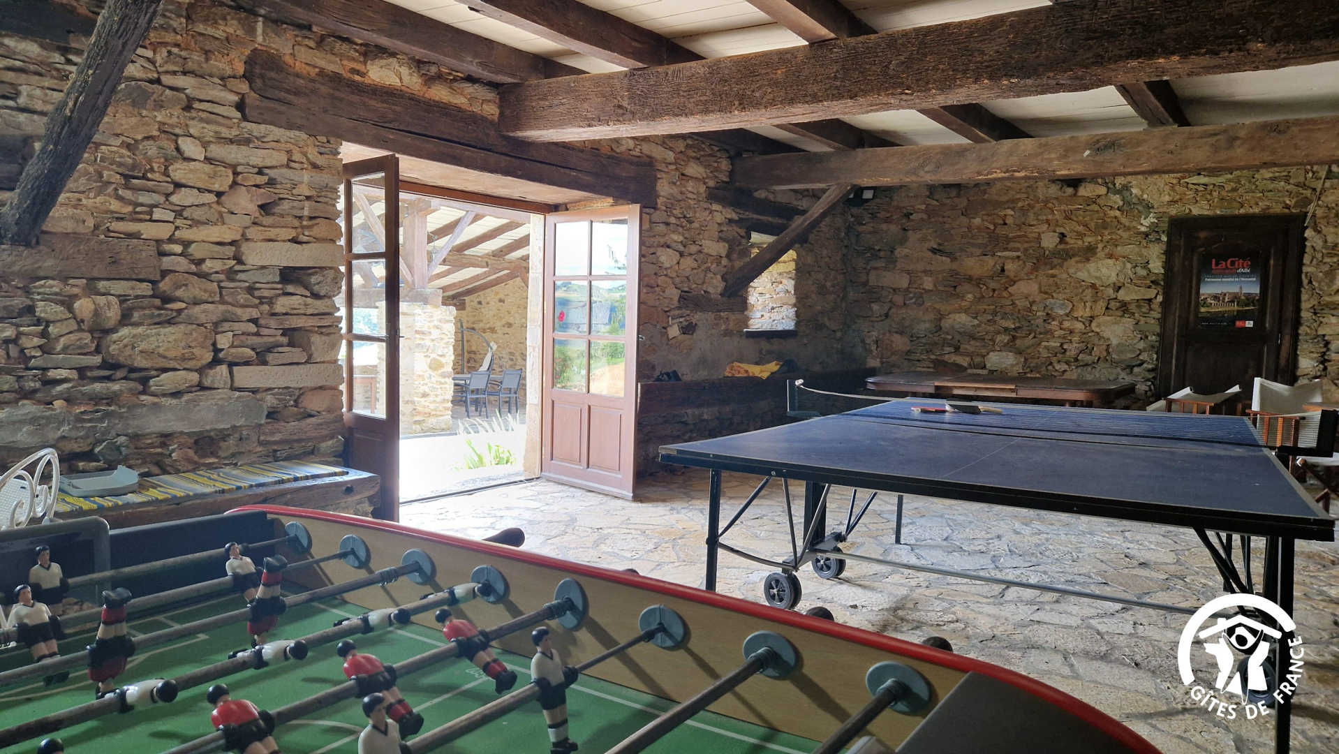 Salle de jeux à partager et aménagée dans les anciennes écuries avec TV, table de ping-pong, babyfoot et jeux de sociétés. Deux lave-linges communs. Vous pourrez vous garer de l’autre côté du gîte, à quelques mètres (pas de voiture dans l’enceinte des hébergements).