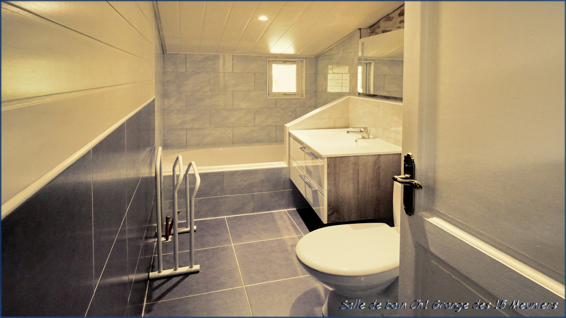Chaque gîte comprend plusieurs salles d’eau et WC, dont une salle d’eau accessible PMR.