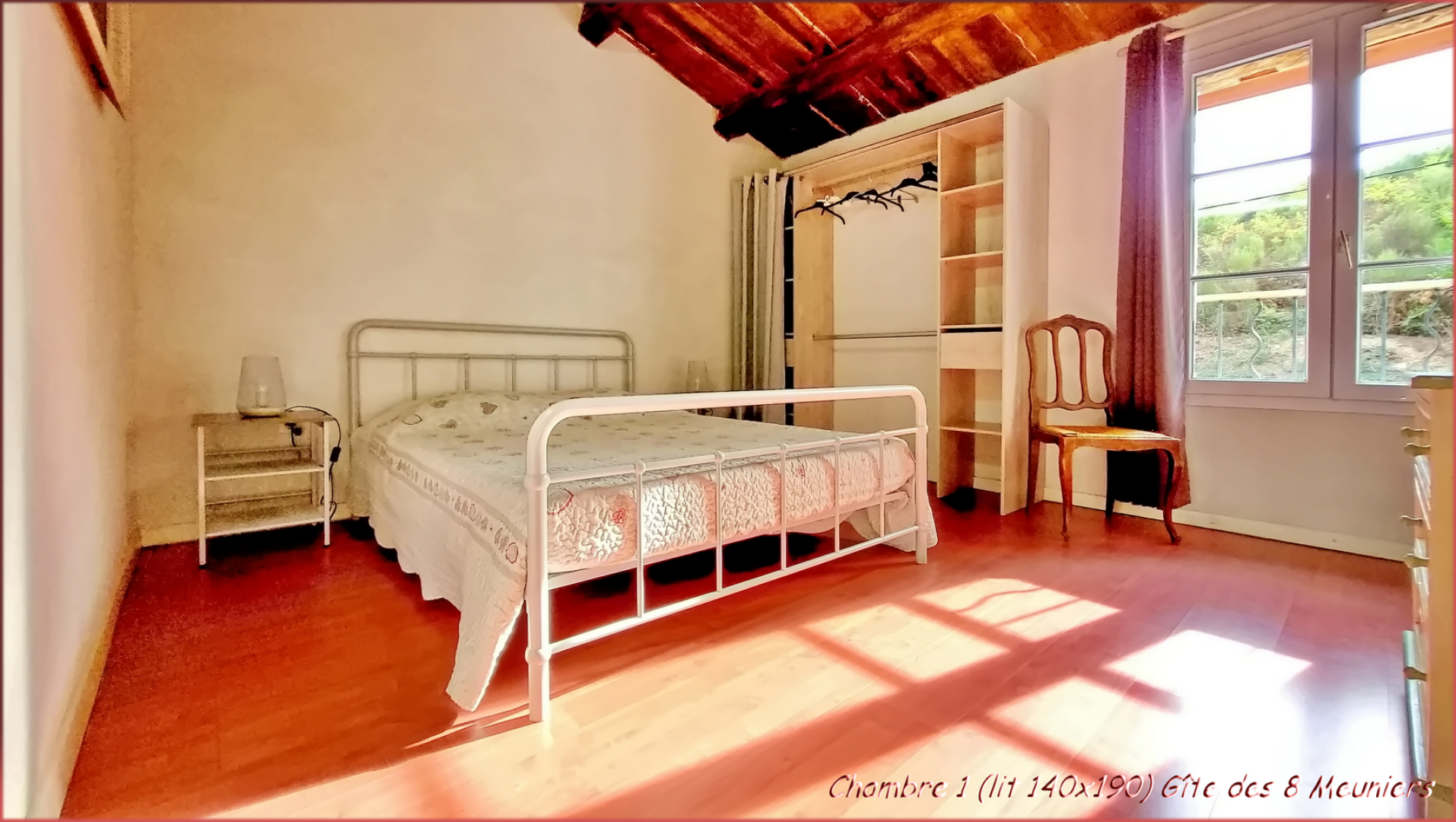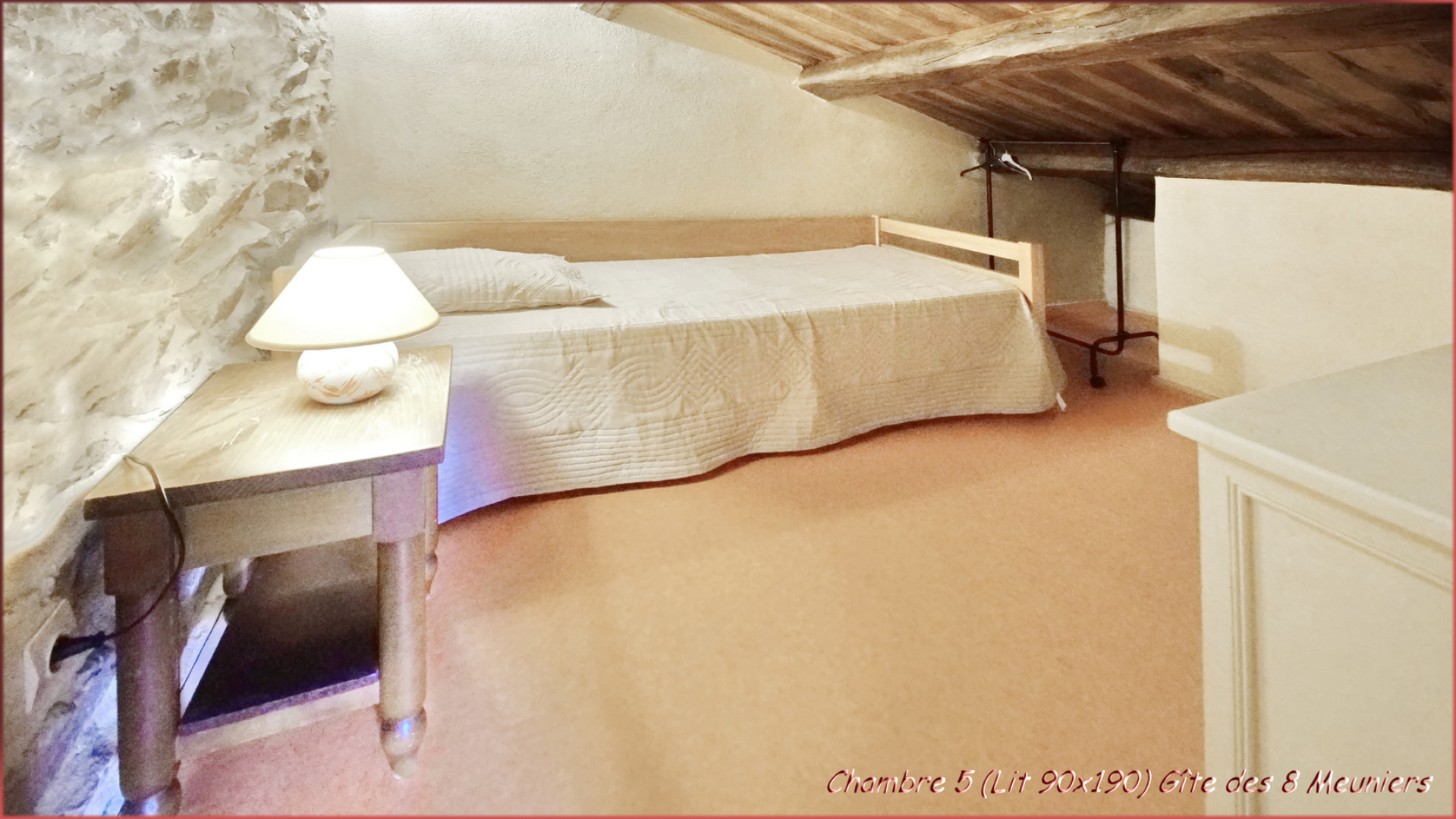 3 chambres avec lit double (140×190), 2 chambres avec lit simple (90×190)