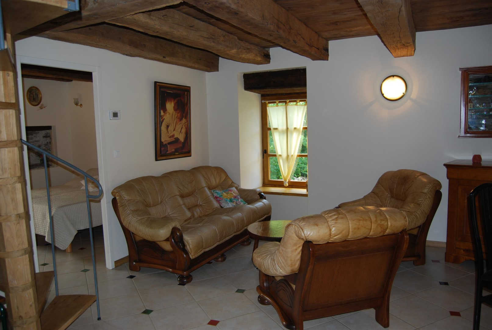 Rez-de-chaussée : cuisine toute équipée, salon, chambre (lit 160x200cm électrique, séparable en deux lits 80x200cm), salle d’eau avec wc.