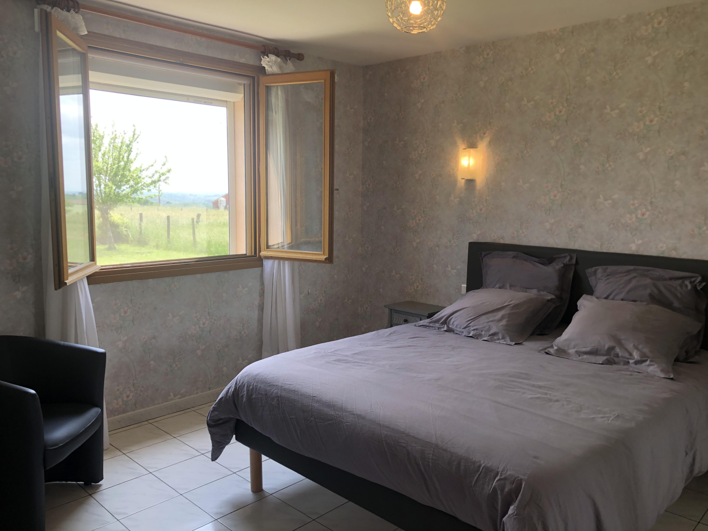 3 chambres : 2 chambres avec lit double en 160x200cm (sommiers et matelas neufs) et grands placards, la troisième avec 2 lits simples en 90x190cm. Il y a 2 chambres qui sont ouvertes directement sur le jardin avec porte-vitrée.