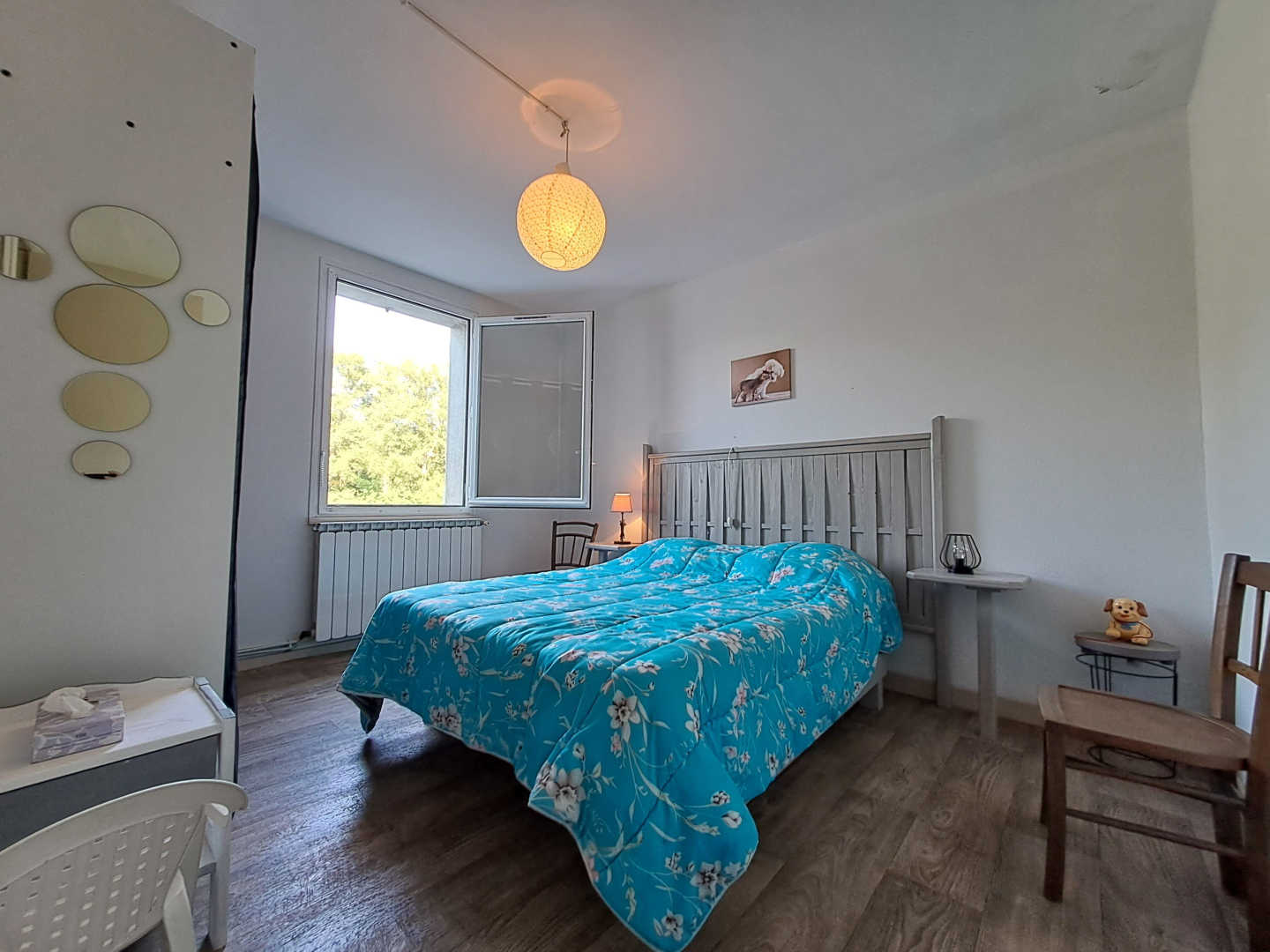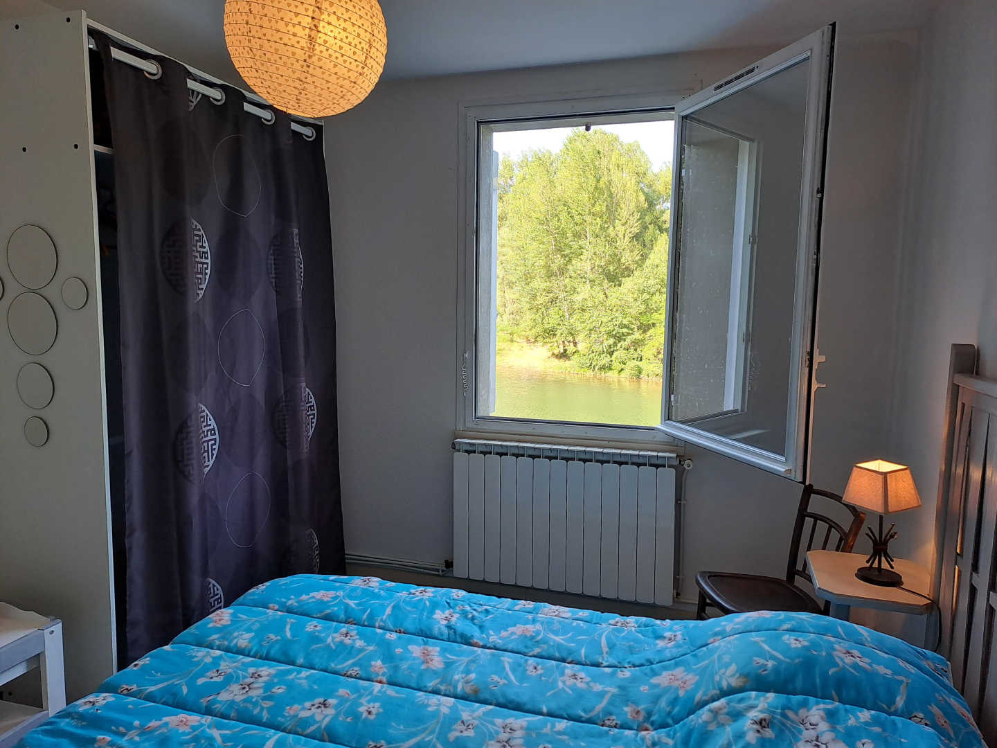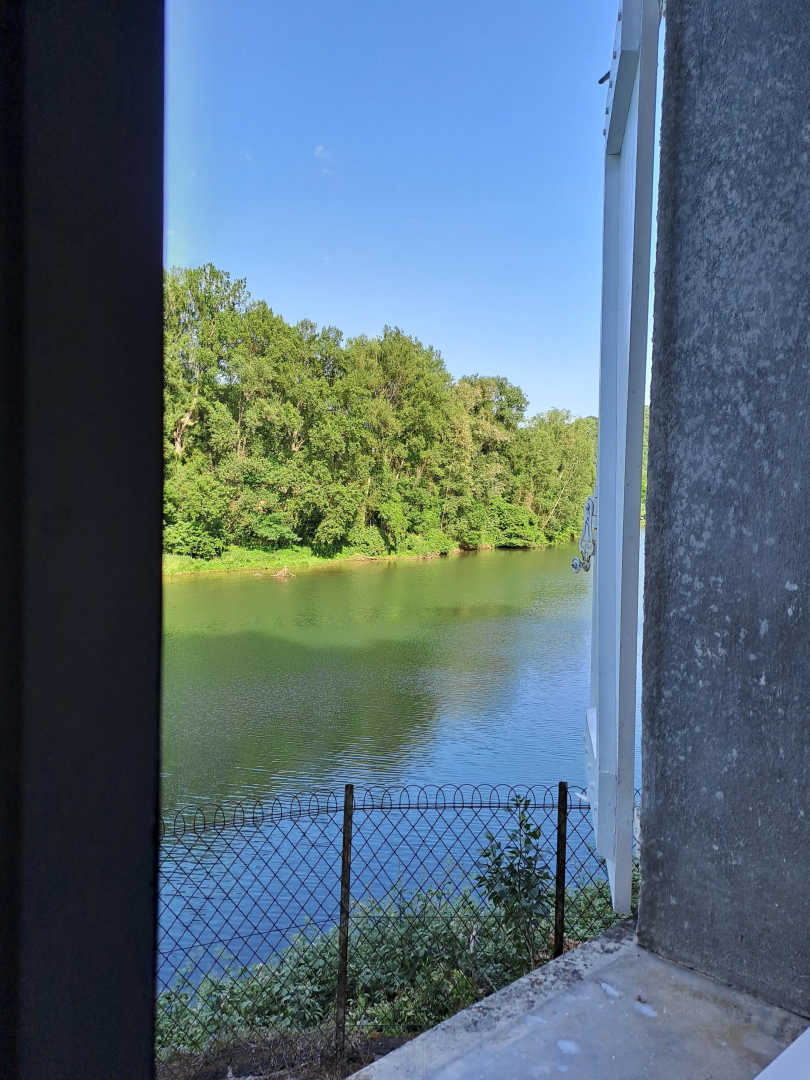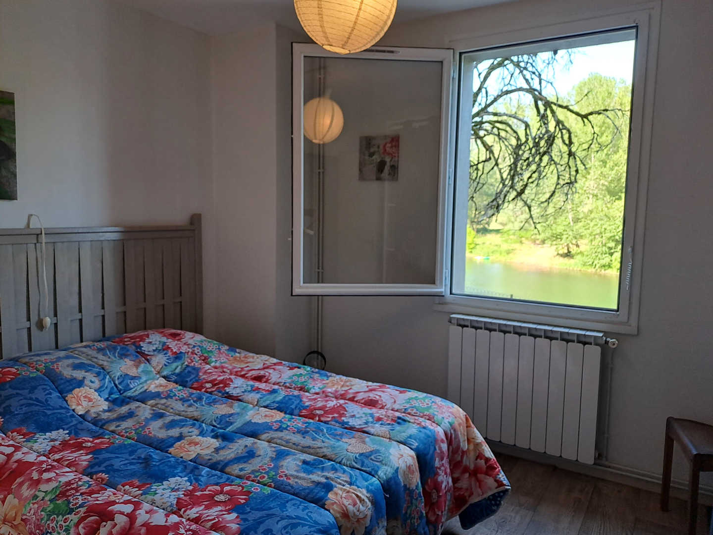 – Chambre 1 et 2 séparées, en-contrebas avec chacune un lit en 140x190cm, fenêtre donnant sur la rivière
