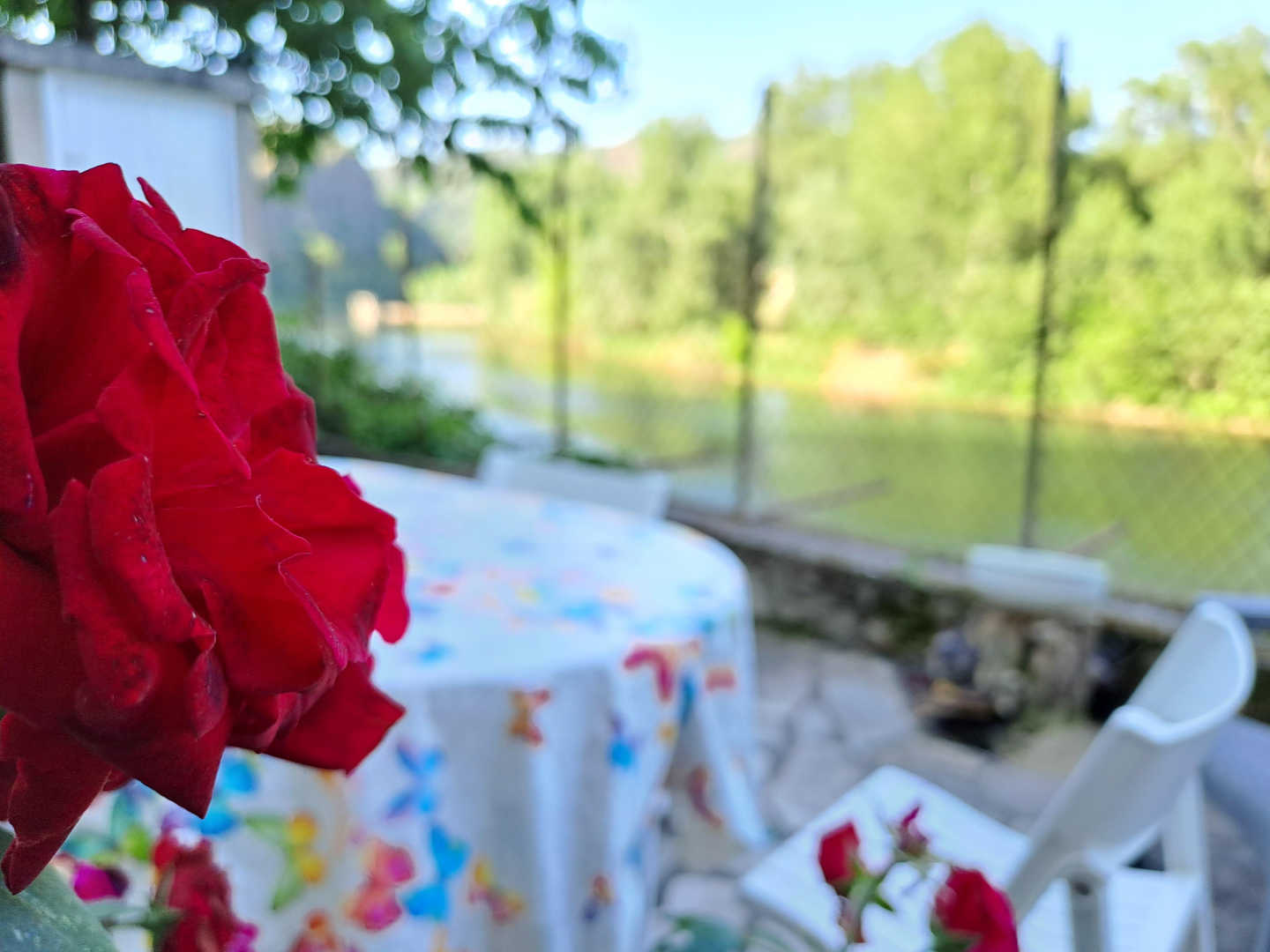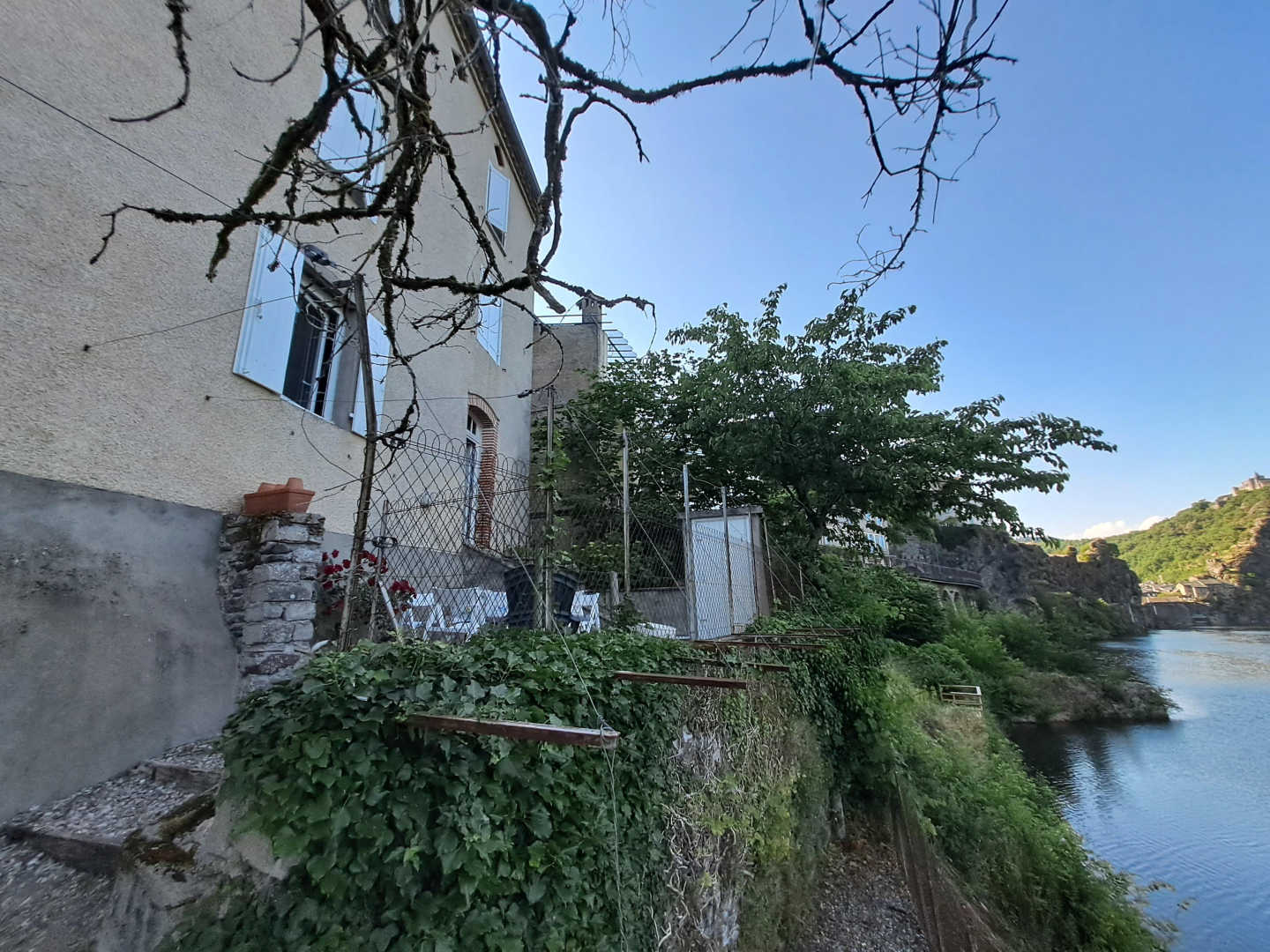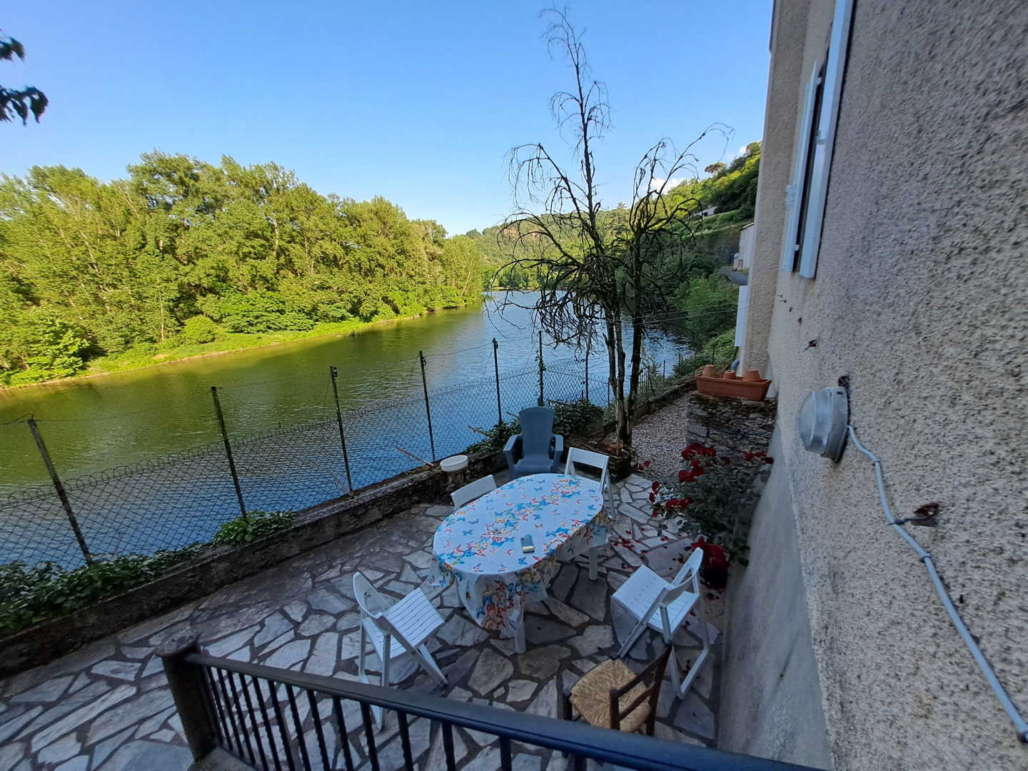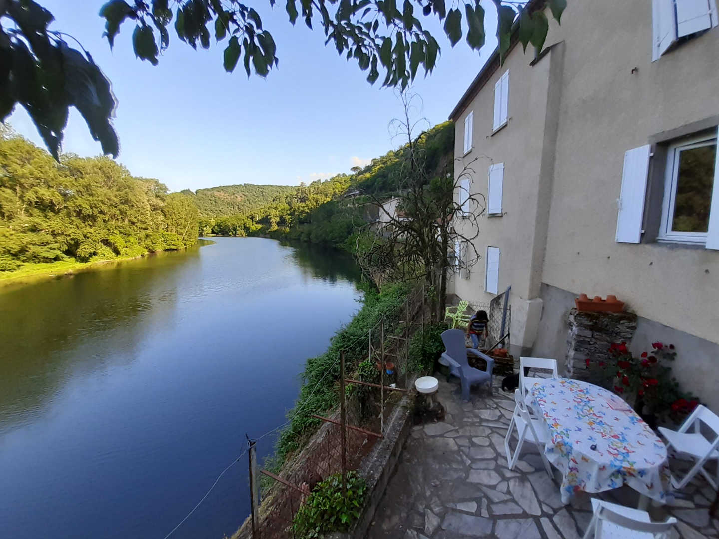Cette maison familiale a été achetée dans les années 80’s puis rénovée en 2014. Le Gîte des Reflets du Tarn ne porte pas son nom pour rien. La terrasse vous offre une vue plongeante sur la rivière du Tarn ainsi que la presqu’île d’Ambialet. Vous n’avez plus qu’à vous installer tranquillement et regarder passer les kayakistes.