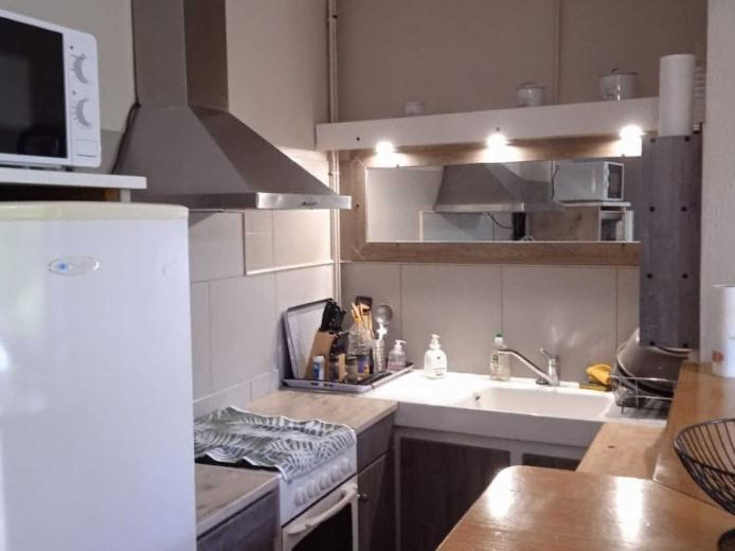 – Pièce à vivre comprenant le salon avec TV et jeux de sociétés, salle à manger et coin cuisine. Cuisine équipée d’un lave-vaisselle, gazinière avec four, frigo-congélateur, micro-ondes, bouilloire, grille-pain, cafetière à filtre et à dosettes Senseo®.