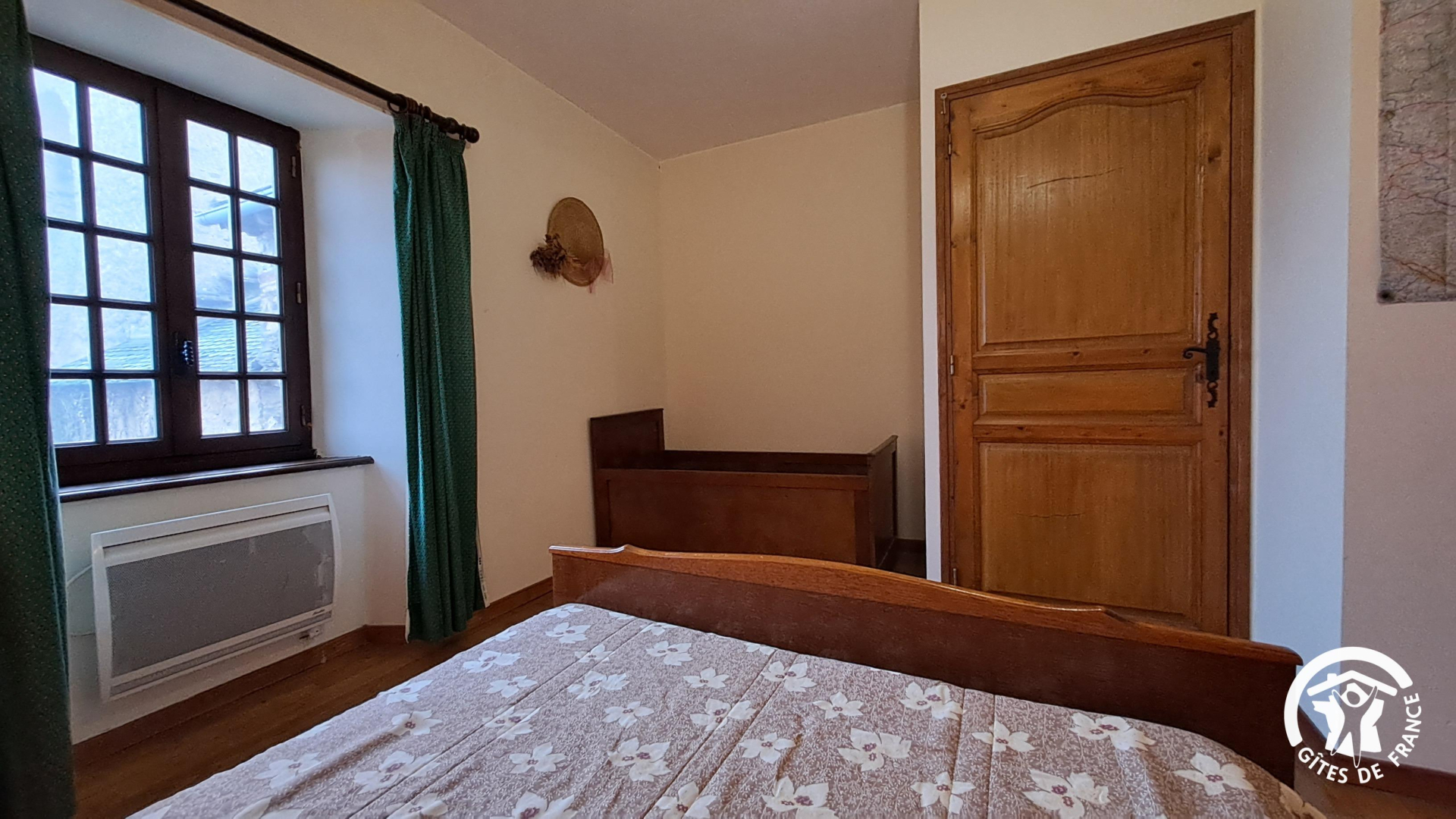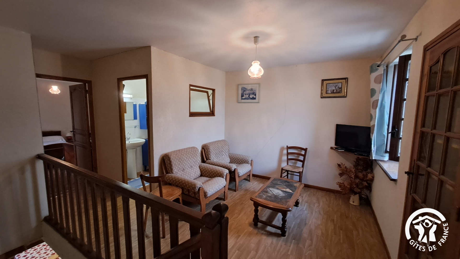 A l’étage : 2 chambres avec un petit coin salon, 1 salle d’eau, 1 wc. Chaque chambre comporte 1 lit double en 140×190. Un lit bébé dans un chambre. Chauffage électrique.