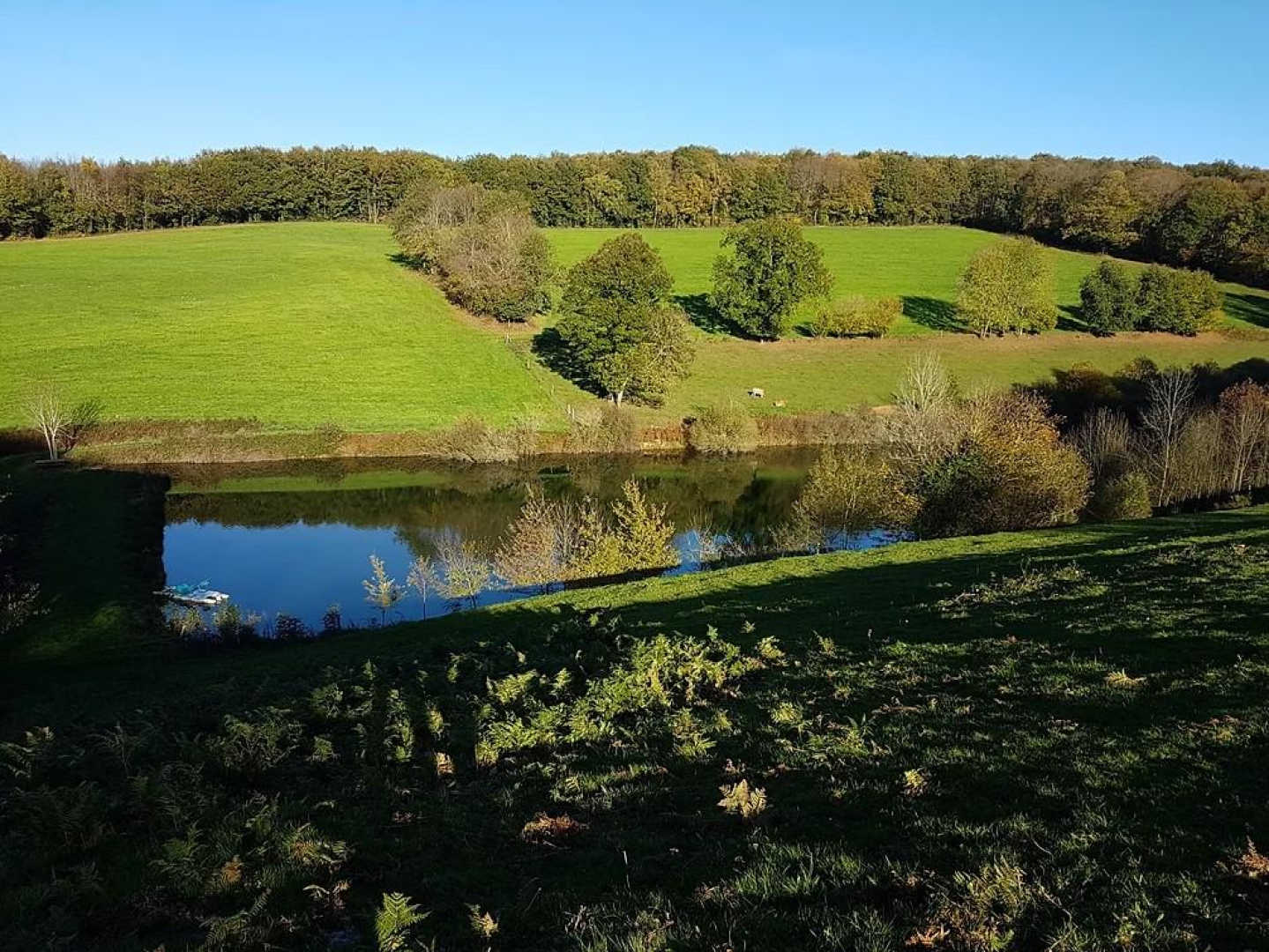 Jardin devant le gîte, grands espaces autour du hameau (domaine agricole et pastoral de 50 hectares de terres, de prairies et de bois. Possibilité d’aller voir les vaches en compagnie des propriétaires).Possibilité de baignade dans le lac des propriétaires (baignade non surveillée), et un pédalo à disposition. Le lac se trouve à 500 mètres à pieds gu gîte. Table de pique-nique sur la digue, pour déjeuner au bord de l’eau. Sentier de randonnée privé de 4km dans la propriété.